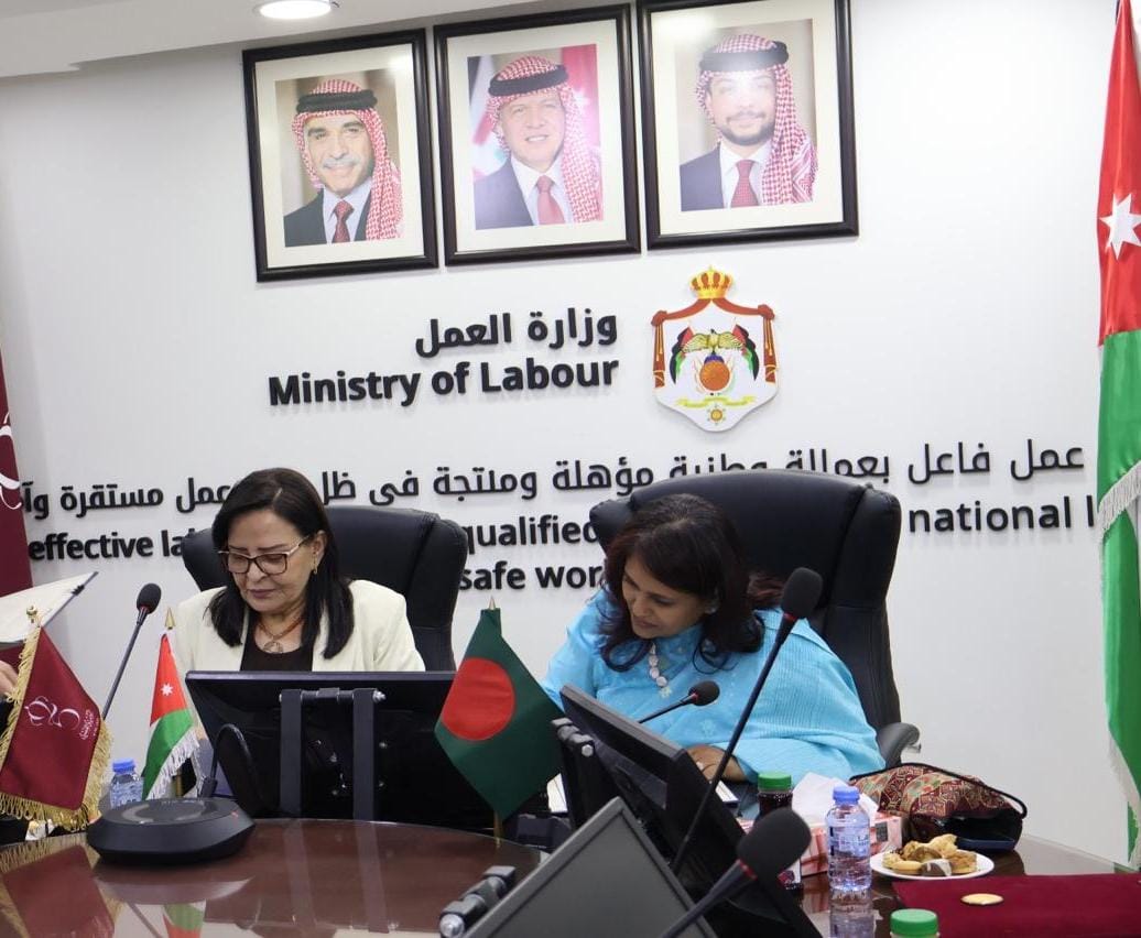 وقعت وزيرة العمل ناديا الروابدة اليوم الأحد في مبنى الوزارة مع سفيرة جمهورية بنغلادش الشعبية لدى المملكة ناهدة سبحان تجديد مذكرة التفاهم بين البلدين في مجال تنظيم استقدام واستخدام العمالة غير الأردنية من الجنسية البنغالية.